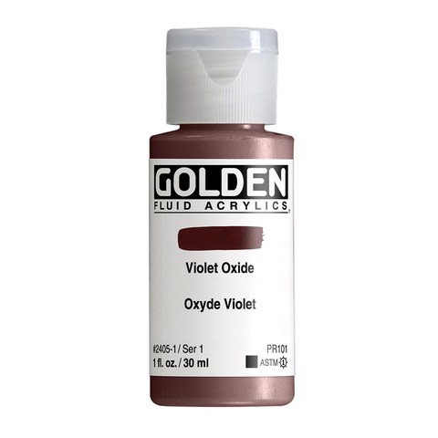GOLDEN Fluid Acrylic ColorsEqual the intensity of GOLDEN Heavy Body Acrylics but with an even, flowing characteristic useful for dry brush application, fine details, pouring, spraying (particularly when mixed with GOLDEN Airbrush Medium), staining techniques and many others.Fluids are created by loading an acrylic polymer binder with concentrated levels of quality pigments for a wide selection of permanent and light-fast colors. No fillers or extenders are added to achieve the desired consistency, nor is the fluid quality achieved with additional water. GOLDEN Fluid Acrylics have the same pigment load as the Heavy Body Acrylics, but in a viscosity similar to heavy cream. Fluids allow for smooth flowing applications while retaining color intensity, tinting strength, film integrity, and adhesion.